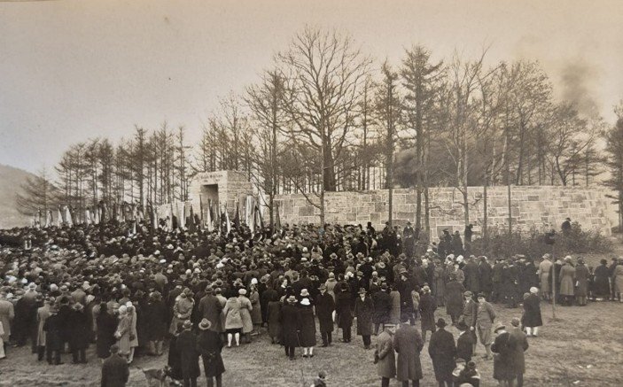 Fahnenbeflaggung zur Einweihung des Ehrenmals auf dem Hainberg, November1929