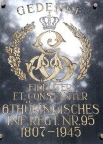 In Gotha setzte ein Projekt des ansässigen Vereins für historische Uniformen in Zusammenarbeit mit der Coburger Kameradschaft der 95er einen neuen Gedenkstein in den Gothaer Stadtpark.[35] Die Gedenkplatte erinnerte nun an genau dasselbe Regiment, dem einst nur wenige hundert Meter entfernt ein Kriegerdenkmal gewidmet war. Die militärischen Traditionen sollten dabei nicht nur auf die Soldaten des Ersten Weltkriegs verweisen. So wurde in der Inschrift auf die Entstehung 1807 sowie das Ende nach dem Zweiten Weltkrieg 1945 verwiesen.