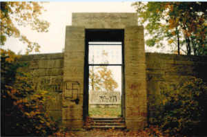 Rechte Graffitis am Eingang des Denkmals auf dem Friedensberg in Jena, 1993.